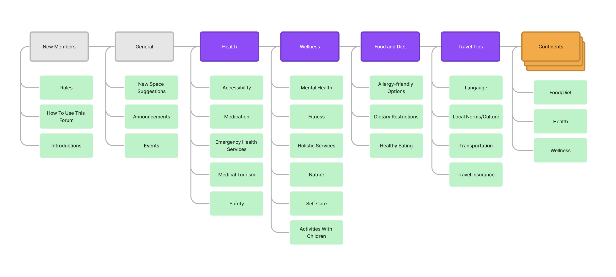 Having made a decision, our team moved on to how the community forum would be structured. Will people use this forum to find travel destinations before they book their trip or resources after they book their trip that meet their health and wellness needs/goals? Or, both?
