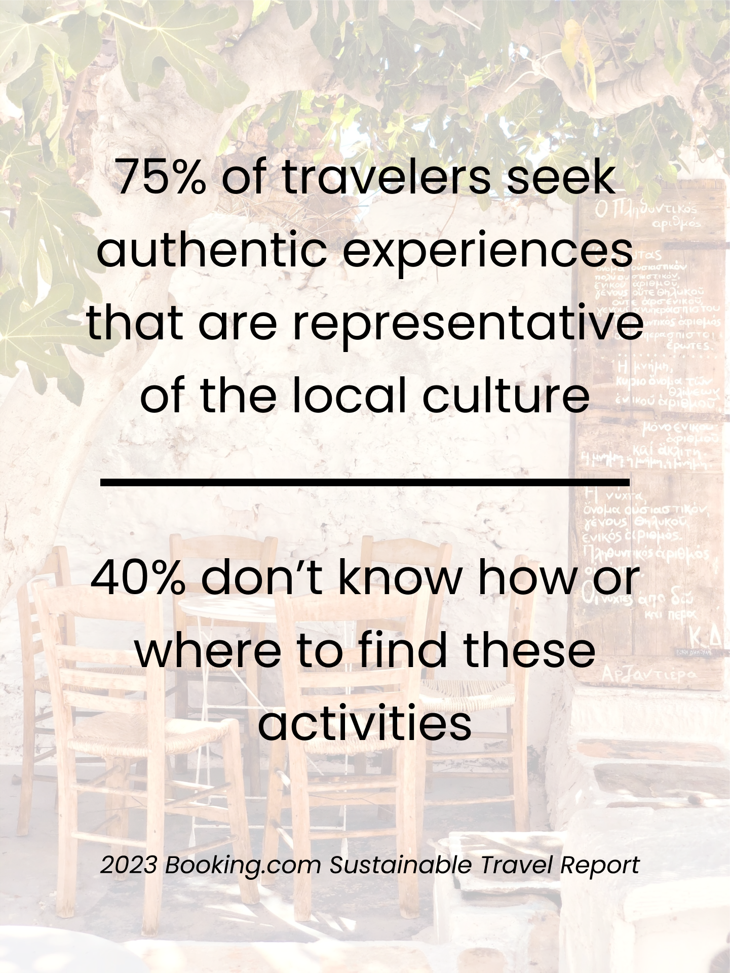 People don't want to spend their time in a tourist trap. They don’t want an experience where there’s hundreds or thousands of tourists. They want authentic experiences. To find those experiences, people need to connect with local residents or others familiar with the destination, who can provide recommendations on reputable and authentic experiences.